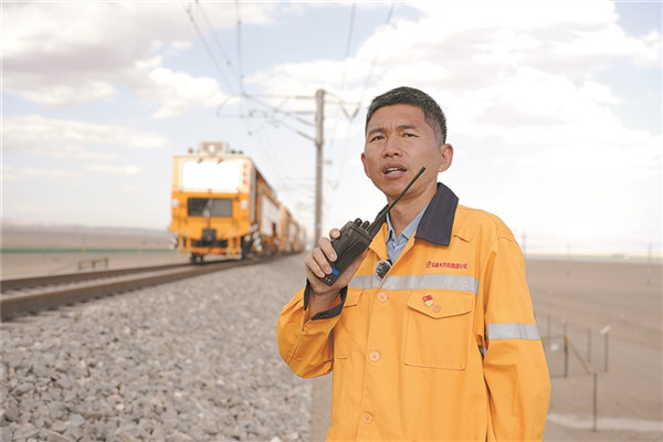 近日,喬濟源從若羌站登上了開往依吞布拉克站的貨運列車。他專注地查看前方線路、接觸網和沿線電務設備,觀察軌道的細微變化?!拔覀冘囬g融合工務、電務、供電3個專業(yè),每月都要進行巡檢。”他說。