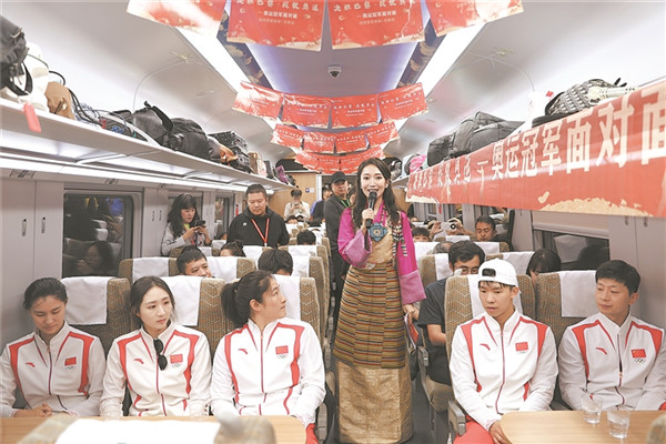 奧運(yùn)冠軍乘坐復(fù)興號(hào)高原動(dòng)車組列車。馬生明 攝