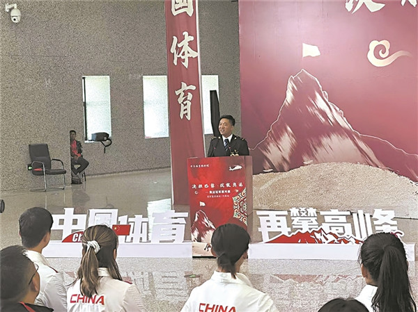 指導(dǎo)司機(jī)斯朗旺扎在林芝站與奧運(yùn)冠軍同臺(tái)宣講。馬生明 攝