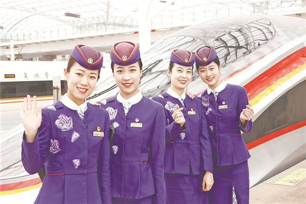 “春風(fēng)得意馬蹄疾,一日看盡長安花?!碧拼娙嗣辖嫉拿篮闷谂?,在千年之后成為現(xiàn)實。煥然一新的車廂環(huán)境、一日千里的運行速度、詮釋著不同地域特色的鐵路制服,令“中國高鐵”這張名片愈發(fā)亮麗。年輕的“動哥”“動姐”穿著青春時尚的鐵路制服,吸引萬千旅客目光。時代感、國際范兒逐漸成為高鐵時代新式鐵路制服的特色。
