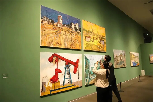 梁宇表示,這是他第8次個(gè)人展覽,與之前的展覽相比有突出的變化。在本次展覽中,作品內(nèi)容更多元,創(chuàng)作風(fēng)格更豐富,既有記憶中那些永不消逝的鐵路風(fēng)景,比如信號(hào)燈系列、車(chē)站系列、火車(chē)系列等;也有心中主觀(guān)創(chuàng)造的風(fēng)景,如紅房子系列、道口系列;還有新近創(chuàng)作的現(xiàn)實(shí)風(fēng)景,如克拉瑪依系列。