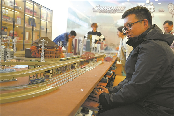 來(lái)自天津的火車迷王先生特地帶著心愛的火車模型趕來(lái),在沙盤上模擬運(yùn)行。