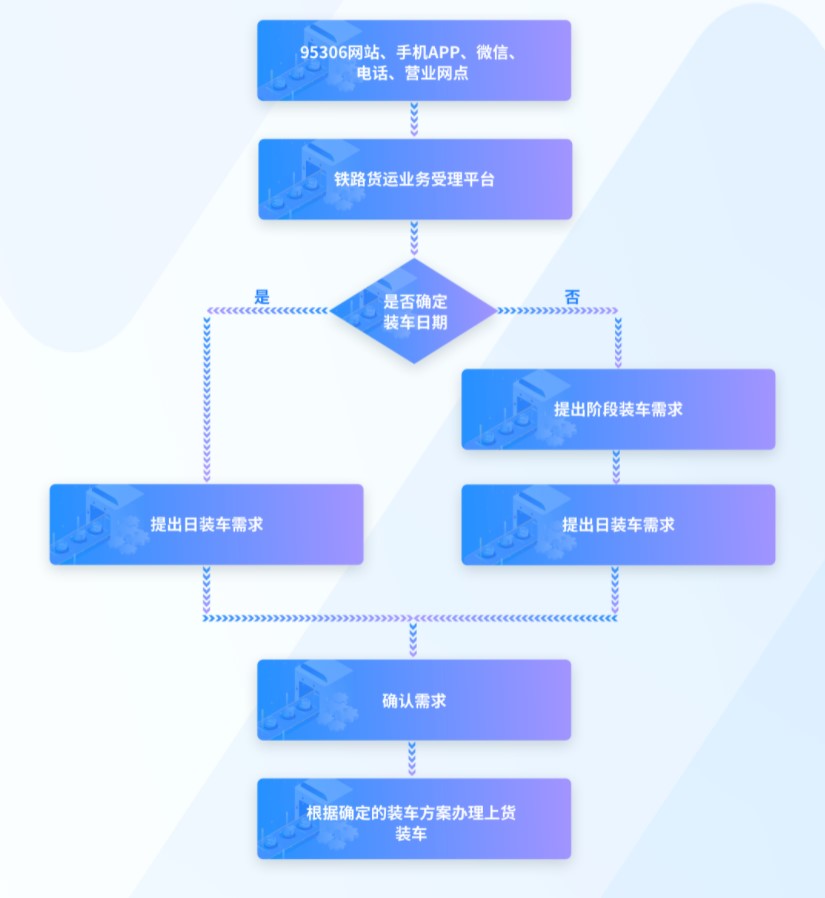 鐵路具有運(yùn)量大、運(yùn)價(jià)低、全天候、安全、環(huán)保、路網(wǎng)站點(diǎn)分布廣等特點(diǎn),適應(yīng)于煤炭、石油、礦石、鋼鐵、焦炭、糧食、化肥、化工、水泥等大宗品類物資運(yùn)輸,同時(shí)適應(yīng)于重量在40噸以上或體積在80立方米以上的部分塑料制品、金屬制品、工業(yè)機(jī)械、日用電器、果蔬、飲食品、紡織品、紙制品、文教用品、醫(yī)藥品、瓷磚、板材等批量貨物運(yùn)輸。國(guó)家鐵路提供大宗貨運(yùn)直達(dá)班列、批量貨物快運(yùn)、專用線接軌服務(wù)等個(gè)性化服務(wù)產(chǎn)品。